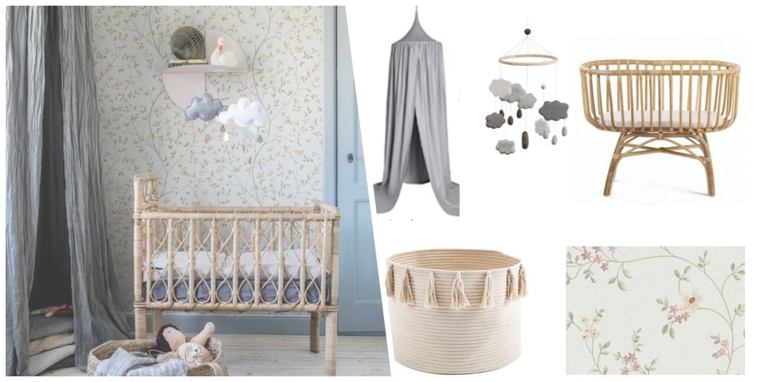 ¿Alguna vez pensaste en decorar un dormitorio así sin salir de casa y con unos pocos clics? Si este cuarto te gusta pues aquí lo tienes. Este dormitorio tiene un detalle que lo hace muy vintage y es ese papel pintado con florecitas. Sin embargo la atención se nos desvía a la cuna de ratán y es por eso que me parece que hace una combinación perfecta. ¿Qué dirán nuestras madres o abuelas cuando ven esas cuna antiguas? Seguramente se llenen de recuerdos y anécdotas. Y como bien se dice “todo vuelve”.